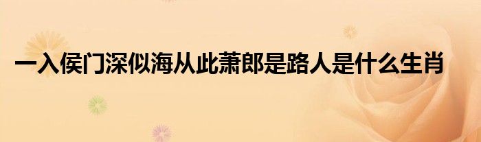 关于一入侯门深似海从此萧郎是路人是什么生肖这个很多人还不知道,今天菲菲来为大家解答以上的问题,现在让我们一起来看看吧!