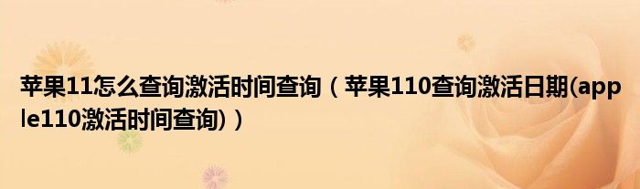 大家好,小常来为大家解答以上问题。苹果11怎么查询激活时间查询,苹果110查询激活日期(apple110激活时间查询)很多人还不知道,现在让我们一起来看看吧!