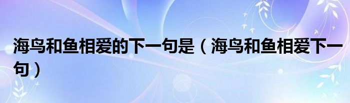 关于海鸟和鱼相爱的下一句是,海鸟和鱼相爱下一句这个很多人还不知道,今天菲菲来为大家解答以上的问题,现在让我们一起来看看吧!