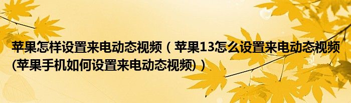 大家好,小常来为大家解答以上问题。苹果怎样设置来电动态视频,苹果13怎么设置来电动态视频(苹果手机如何设置来电动态视频)很多人还不知道,现在让我们一起来看看吧!