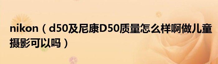 1,尼康D50质量怎么样啊做儿童摄影可以吗:你说的儿童摄影是儿童使用还是拍摄儿童。 如果是拍摄儿童D50比较适合,因为D50有一个专为拍摄儿童设计的“儿童模式”。都是之前拍摄了数千张照片留下最好的一些快门光圈的搭配。 其实使用手动模式以后D70也能达到这样的效果。如果想再提高拍摄的技巧。使用D70也是很好的选择。 当然镜头的选择也是很有讲究的。 拍摄人像最好的焦段是28-85,所以你可以选择18-70,因为是数码相机,所以要乘以1.5倍,就相当于27-105,还有款是28-70也很不错。拍摄人像是最好的一款的了。还有就是50mm1.4定焦,85mm1.4定焦,拍摄人物也是非常好的