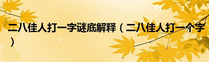 二八佳人打一字谜底解释,二八佳人打一个字这个很多人还不知道,小飞来为大家解答以上的问题。现在让我们一起来看看吧!