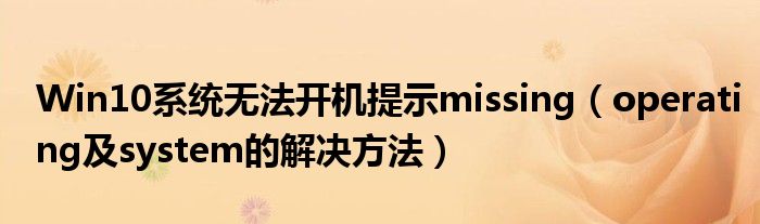 大家好,今天小悦来为大家解答以上问题。Win10系统无法开机提示missing,operating及system的解决方法很多人还不知道,现在让我们一起来看看吧!