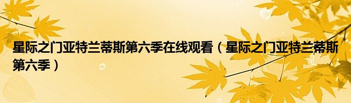 星际之门亚特兰蒂斯第六季在线观看,星际之门亚特兰蒂斯第六季这个很多人还不知道,小飞来为大家解答以上的问题。现在让我们一起来看看吧!