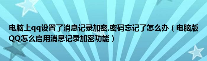大家好,今天小悦来为大家解答以上问题。电脑上qq设置了消息记录加密,密码忘记了怎么办,电脑版QQ怎么启用消息记录加密功能很多人还不知道,现在让我们一起来看看吧!