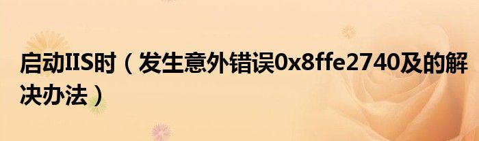 大家好,今天小悦来为大家解答以上问题。启动IIS时,发生意外错误0x8ffe2740及的解决办法很多人还不知道,现在让我们一起来看看吧!