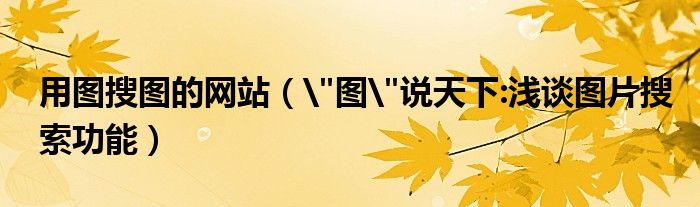 大家好,今天小悦来为大家解答以上问题。用图搜图的网站,"图"说天下:浅谈图片搜索功能很多人还不知道,现在让我们一起来看看吧!