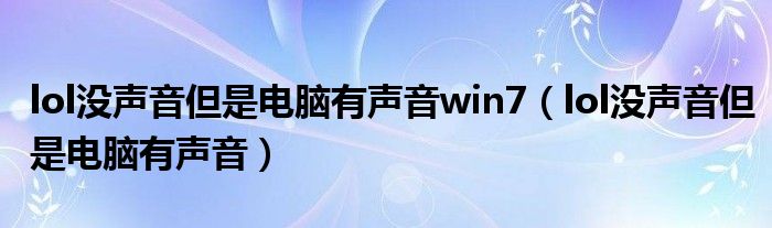 大家好,小飞来为大家解答以上问题,lol没声音但是电脑有声音win7,lol没声音但是电脑有声音很多人还不知道,现在让我们一起来看看吧!