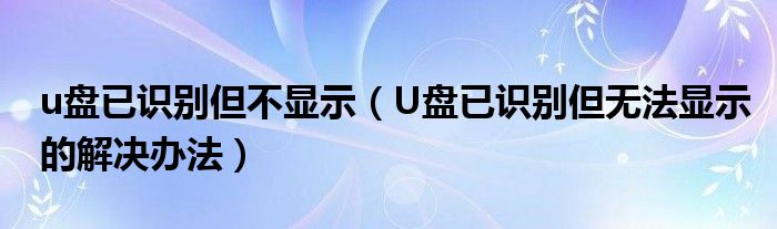大家好,今天小悦来为大家解答以上问题。u盘已识别但不显示,U盘已识别但无法显示的解决办法很多人还不知道,现在让我们一起来看看吧!