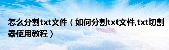 大家好,今天小悦来为大家解答以上问题。怎么分割txt文件,如何分割txt文件,txt切割器使用教程很多人还不知道,现在让我们一起来看看吧!