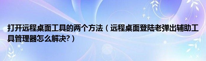 大家好,今天小悦来为大家解答以上问题。打开远程桌面工具的两个方法,远程桌面登陆老弹出辅助工具管理器怎么解决?很多人还不知道,现在让我们一起来看看吧!