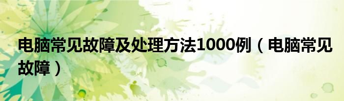 大家好,小飞来为大家解答以上问题,电脑常见故障及处理方法1000例,电脑常见故障很多人还不知道,现在让我们一起来看看吧!
