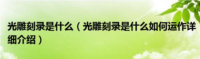 大家好,今天小悦来为大家解答以上问题。光雕刻录是什么,光雕刻录是什么如何运作详细介绍很多人还不知道,现在让我们一起来看看吧!