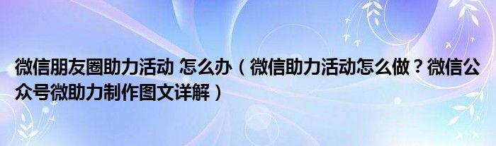 大家好,今天小悦来为大家解答以上问题。微信朋友圈助力活动 怎么办,微信助力活动怎么做?微信公众号微助力制作图文详解很多人还不知道,现在让我们一起来看看吧!
