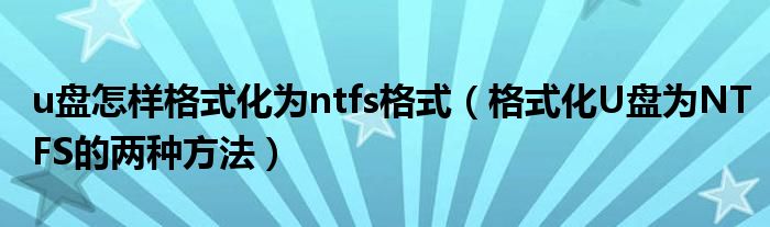 大家好,今天小悦来为大家解答以上问题。u盘怎样格式化为ntfs格式,格式化U盘为NTFS的两种方法很多人还不知道,现在让我们一起来看看吧!