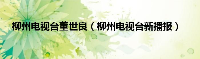 柳州电视台董世良,柳州电视台新播报这个很多人还不知道,小飞来为大家解答以上的问题。现在让我们一起来看看吧!