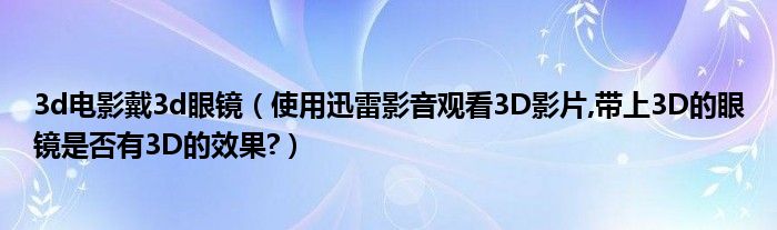 3d电影戴3d眼镜(使用迅雷影音观看3D影片,带上3D的眼镜是否有3D的效果?)