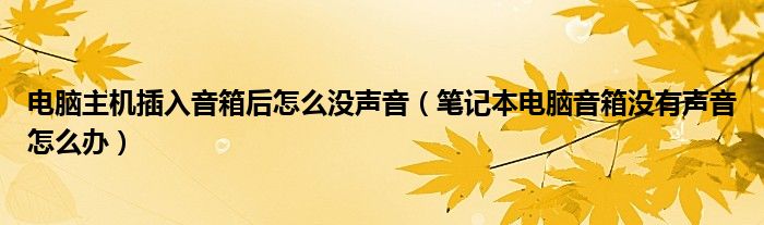 大家好,今天小悦来为大家解答以上问题。电脑主机插入音箱后怎么没声音,笔记本电脑音箱没有声音怎么办很多人还不知道,现在让我们一起来看看吧!