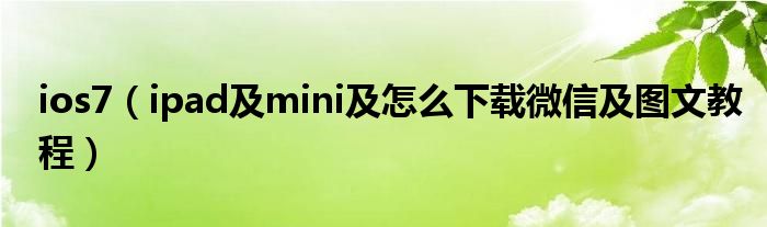 大家好,今天小悦来为大家解答以上问题。ios7,ipad及mini及怎么下载微信及图文教程很多人还不知道,现在让我们一起来看看吧!