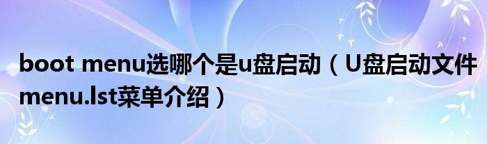 大家好,今天小悦来为大家解答以上问题。boot menu选哪个是u盘启动,U盘启动文件menu.lst菜单介绍很多人还不知道,现在让我们一起来看看吧!