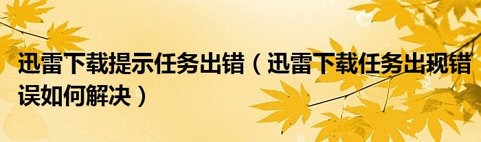 迅雷下载提示任务出错(迅雷下载任务出现错误如何解决)