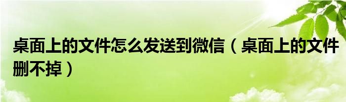 大家好,小飞来为大家解答以上问题,桌面上的文件怎么发送到微信,桌面上的文件删不掉很多人还不知道,现在让我们一起来看看吧!