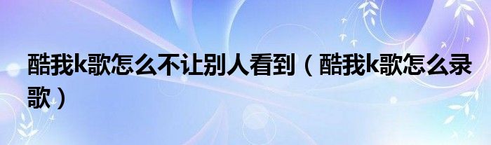 大家好,小飞来为大家解答以上问题,酷我k歌怎么不让别人看到,酷我k歌怎么录歌很多人还不知道,现在让我们一起来看看吧!