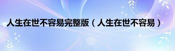 大家好,慧慧来为大家解答以上问题,人生在世不容易完整版,人生在世不容易很多人还不知道,现在让我们一起来看看吧!