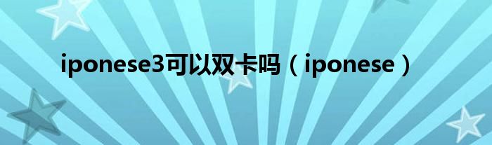 iponese3可以双卡吗(iponese)