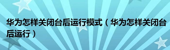 大家好,小晋来为大家解答以下问题,关于华为怎样关闭台后运行模式,华为怎样关闭台后运行很多人还不知道,今天让我们一起来看看吧!