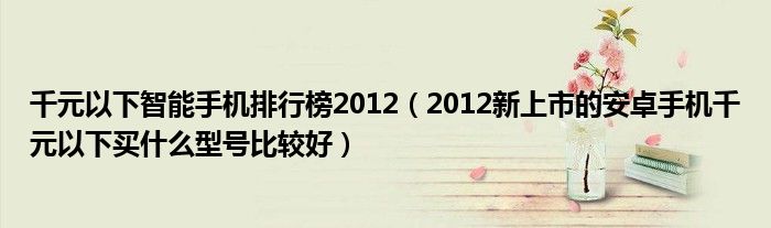 千元以下智能手机排行榜2012(2012新上市的安卓手机千元以下买什么型号比较好)