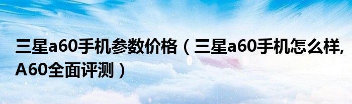 大家好,小常来为大家解答以上问题。三星a60手机参数价格,三星a60手机怎么样,A60全面评测很多人还不知道,现在让我们一起来看看吧!