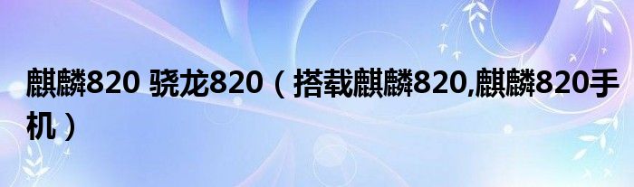 麒麟820骁龙820(搭载麒麟820,麒麟820手机)