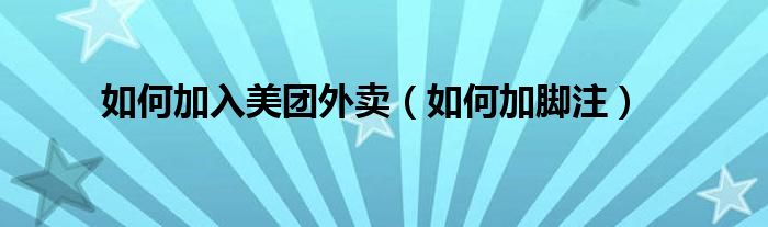 大家好,慧慧来为大家解答以上问题,如何加入美团外卖,如何加脚注很多人还不知道,现在让我们一起来看看吧!