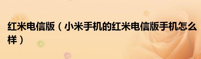 7,电信版的红米手机好不好是一样的吗 :电信版的红米手机还是不错的,和移动版不一样的是,电信版支持电信网络,插电信卡。 红米手机是小米手机系列的一款入门型手机,也属于小米手机系列其中一个产品,红米note2是2015年8月13日在国家会议中心发布的一款多彩大屏手机。 2015年1月4日,小米公司发布红米手机2。 2015年8月16日开放购买红米note2,有多彩版本可选。