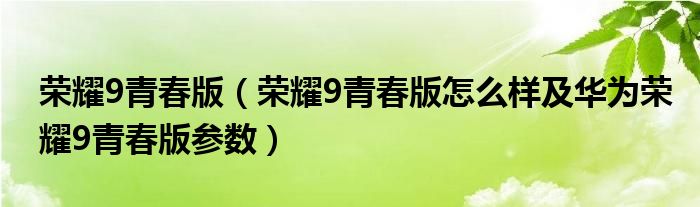 荣耀9青春版参数信息如下:1、屏幕:5.65英寸全面tft lcd(ips)屏幕,2160*1080 fhd+全高清分辨率,色彩更为鲜明、视频更清晰。18:9全面屏,带来更加开阔的视野,还有双面2、5d炫彩镜面玻璃版本,爱不释手。2、系统:搭载emui 8.0智慧化系统,海思麒麟659八核cpu,看视频玩游戏更流畅,支持高达256gb存储拓展。3、拍照:后置摄像头1300万像素+200万像素,f/2.2光圈,支持自动对焦(相位对焦),拍人拍景都很出色,专业虚化,采用多帧合成技术,夜景拍摄也出色,还有智能实物功能;前置摄像头是1300万像素+200万像素,f/2.0光圈,支持固定焦距,自拍也像用单反,搭载专业的人像摄影模式,出色的人像作品。4、电池:3000mah大容量电池,采用智电5.0软硬件一体化节电技术,并且拥有后台高耗电应用智能提醒,一键清理,有效管理电池电量。5、指纹:新一代多功能指纹4.0,最快0.25秒快速解锁,更具备指纹自学习功能。更有支付宝一指支付, 让你保持从容,时刻快人一步。