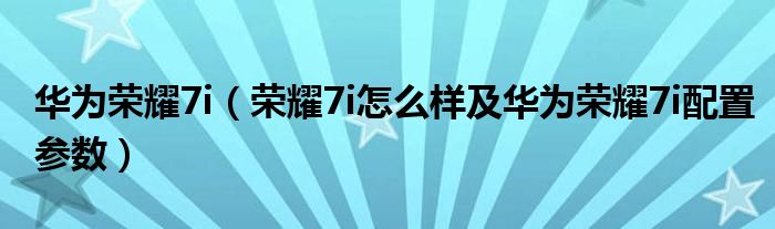 1,荣耀7i怎么样 华为荣耀7i配置参数:您好,我认为华为荣耀7i还是不错的,5.2英寸全高清负向液晶屏,高达80%超高屏占,超窄全金属边框工艺边框,让你看到荣耀7i的第一眼就会被其时尚、优雅、紧凑的外观所吸引。荣耀7i搭载八核骁龙616处理器,双通道3gb lpddr3超大ram,主频800mhz,多任务高效流畅。在音频表现方面,荣耀7i采用音频2.0,独立音腔设计及dts音效保证通话声音明亮通透;mic多孔收音技术保证通话时手指不易遮挡;喇叭底出音工艺的实现,有更好的使用体验,即使手机平放着放置,仍然不会影响声音效果。