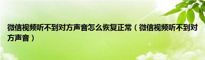 大家好,小晋来为大家解答以下问题,关于微信视频听不到对方声音怎么恢复正常,微信视频听不到对方声音很多人还不知道,今天让我们一起来看看吧!