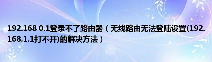 大家好,今天小悦来为大家解答以上问题。192.168 0.1登录不了路由器,无线路由无法登陆设置(192.168.1.1打不开)的解决方法很多人还不知道,现在让我们一起来看看吧!
