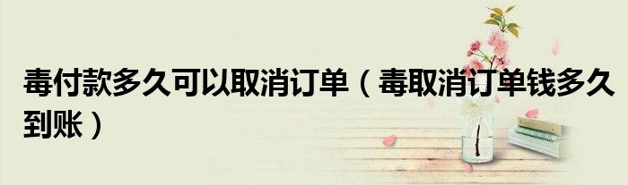 大家好,跳跳为你解答以上问题。毒付款多久可以取消订单,毒取消订单钱多久到账这个问题很多人还不知道,现在让我们一起来看看吧!