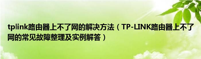 tplink路由器上不了网的解决方法(TP-LINK路由器上不了网的常见故障整理及实例解答)