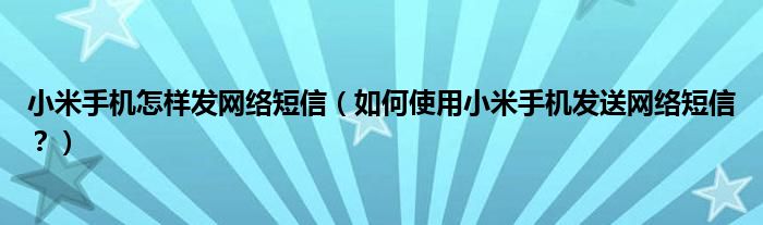 大家好,今天小悦来为大家解答以上问题。小米手机怎样发网络短信,如何使用小米手机发送网络短信?很多人还不知道,现在让我们一起来看看吧!