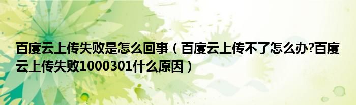大家好,今天小悦来为大家解答以上问题。百度云上传失败是怎么回事,百度云上传不了怎么办?百度云上传失败1000301什么原因很多人还不知道,现在让我们一起来看看吧!