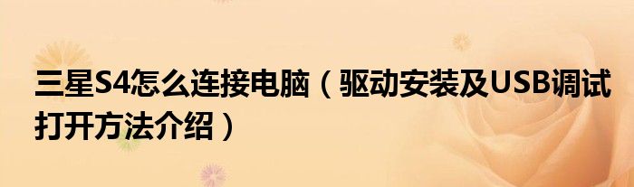 三星S4怎么连接电脑(驱动安装及USB调试打开方法介绍)