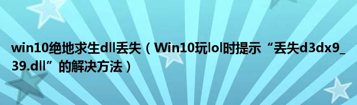 win10绝地求生dll丢失(Win10玩lol时提示“丢失d3dx9_39.d...