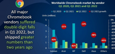 PC和平板电脑在2022年第一季度销量强劲Chromebook全球销量暴跌60%