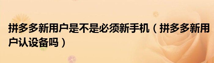 拼多多新用户是不是必须新手机(拼多多新用户认设备吗)