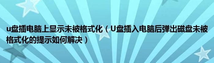大家好,今天小悦来为大家解答以上问题。u盘插电脑上显示未被格式化,U盘插入电脑后弹出磁盘未被格式化的提示如何解决很多人还不知道,现在让我们一起来看看吧!