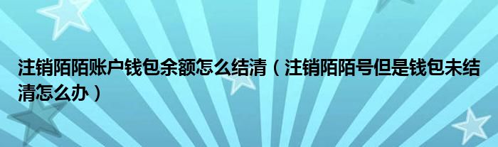 大家好,跳跳为你解答以上问题。注销陌陌账户钱包余额怎么结清,注销陌陌号但是钱包未结清怎么办这个问题很多人还不知道,现在让我们一起来看看吧!