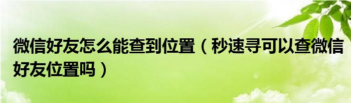大家好,跳跳为你解答以上问题。微信好友怎么能查到位置,秒速寻可以查微信好友位置吗这个问题很多人还不知道,现在让我们一起来看看吧!